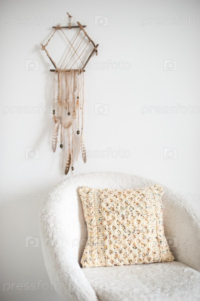Вязаные подушки в интерьере и ловец снов
