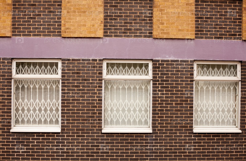 Старая красная кирпичная стена с окнами в Вулверхемптоне