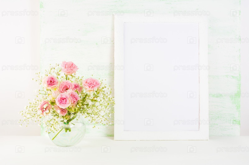 Белая рамка с розовыми розами