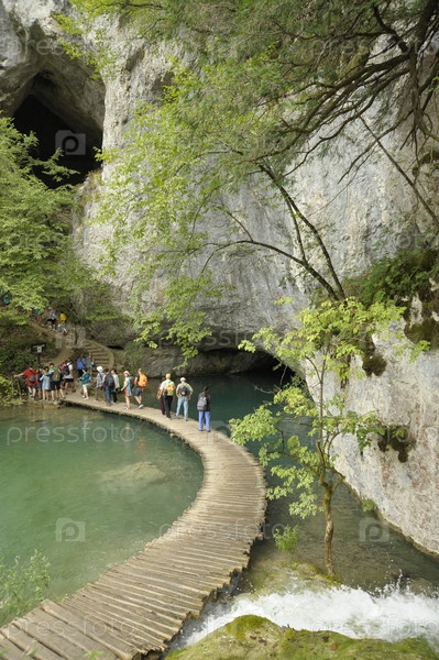 Группа туристов на экскурсии, Плитвицкие озера, Хорватия