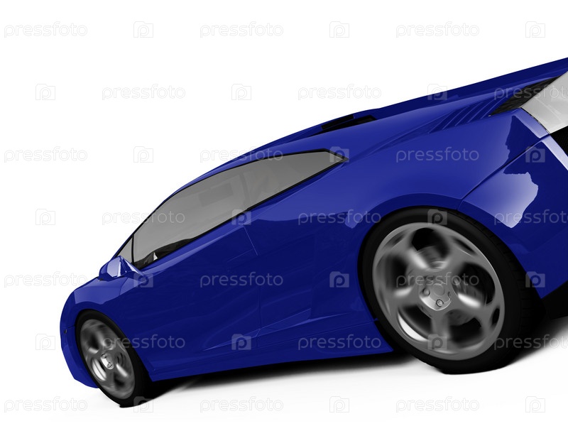Спортивный автомобиль синего цвета на белом фоне