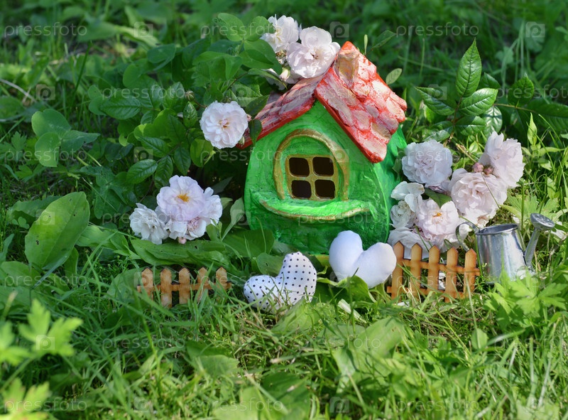 Маленький милый зеленый дом с розами