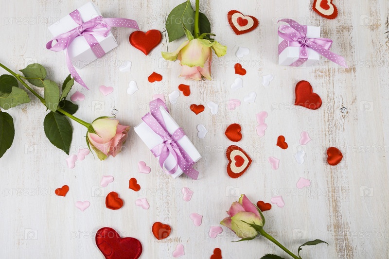 Розовые розы, подарок и сердце