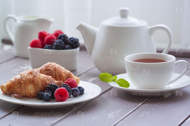 Европейский завтрак: чай и круассаны