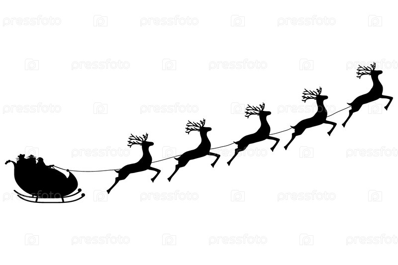Санта-Клаус едет на санях в упряжке оленей