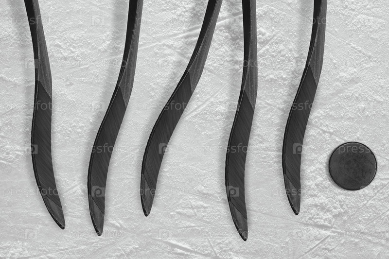 Хоккейная шайба и пять клюшек