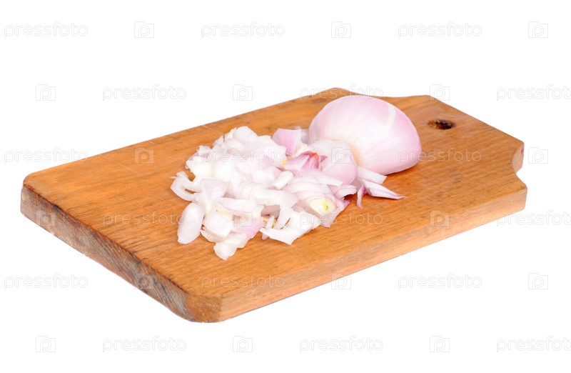 Нарезанный лук на кухонной доске