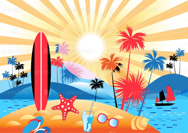 Летний тропический пейзаж с пальмами
