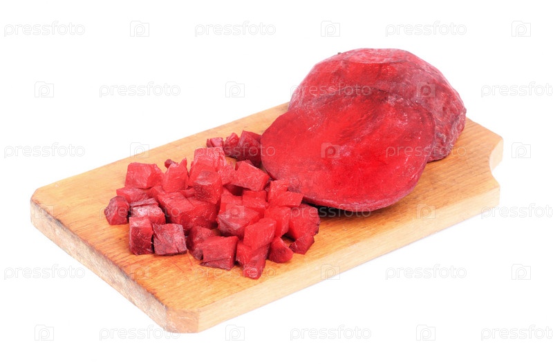 Частично нарезанная свекла на кухонной доске на белом фоне