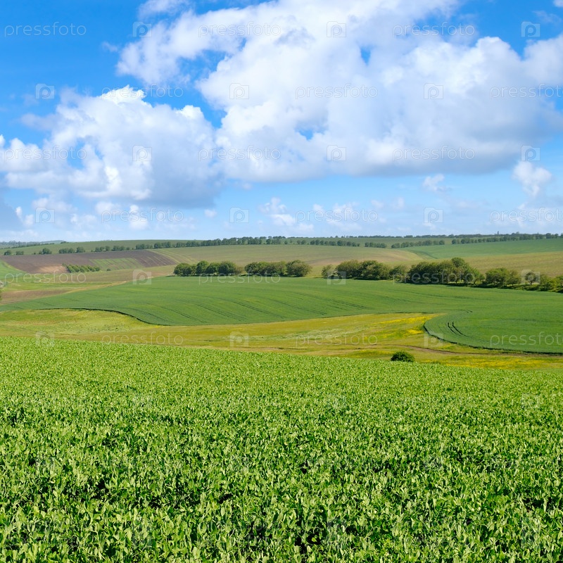 Зеленое поле и голубое небо