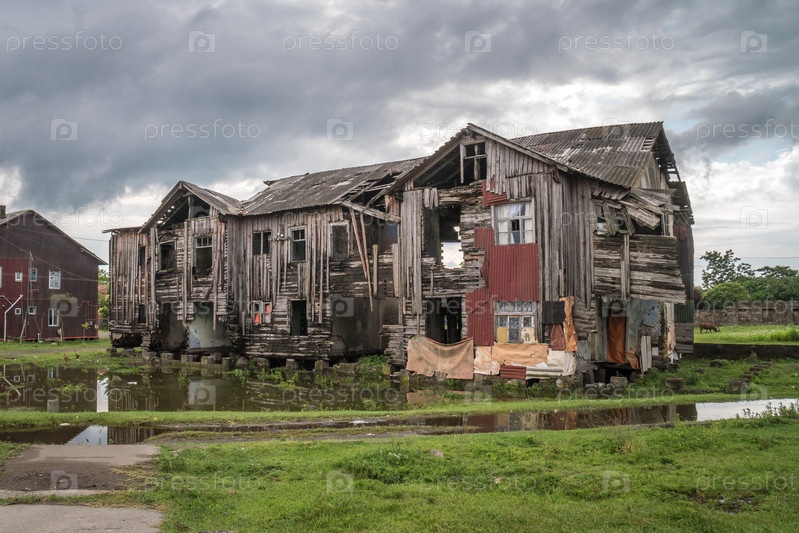 Старый разрушенный деревянный дом на окраине города