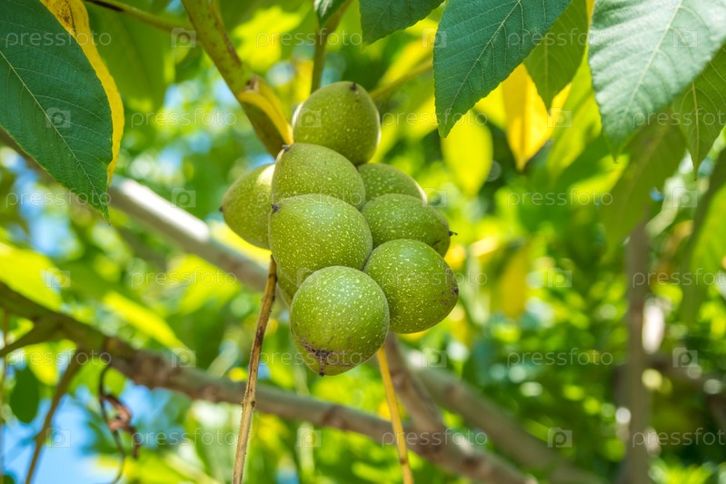 Зеленые орехи на дереве