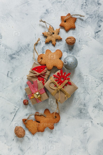 Рождественские пряники и подарки с праздничным декором