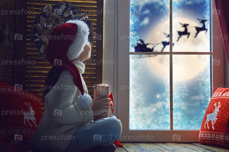 Девочка у окна на Рождество