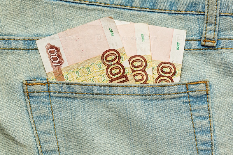 Несколько российских рублей в кармане джинсов