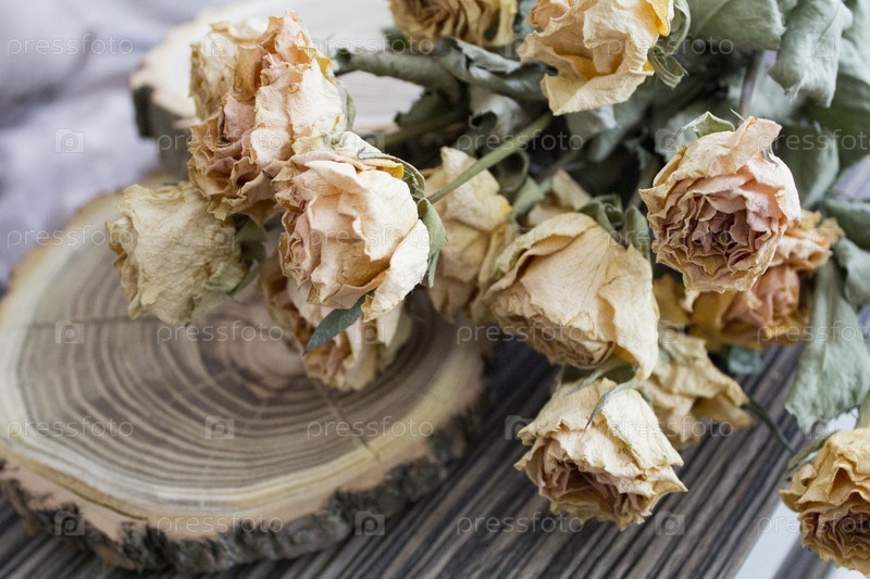 Спил древесины с высушенными розами