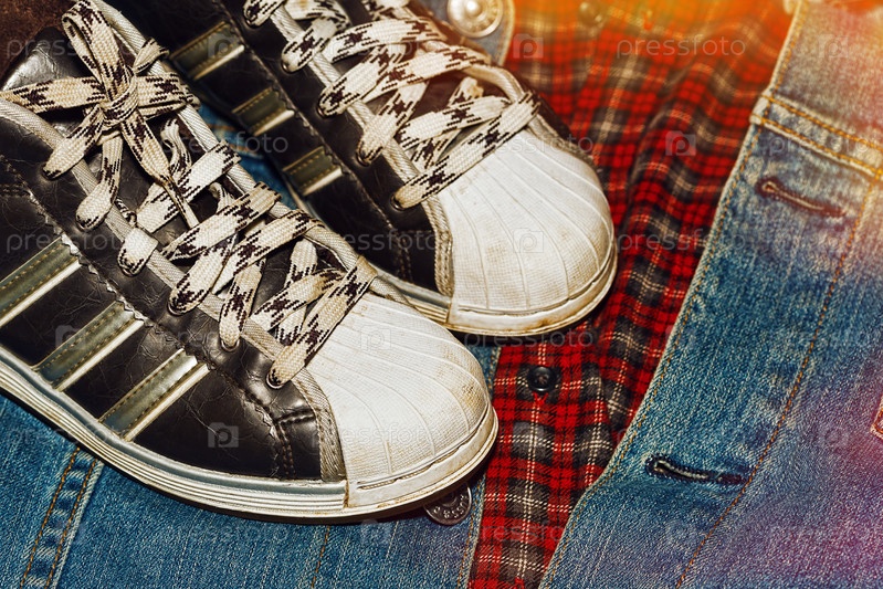 Кроссовки на джинсовой куртке