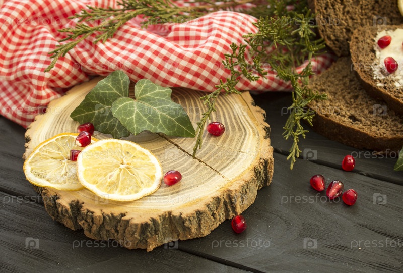 Рождественские украшения с лимоном, можжевельником и грнатом