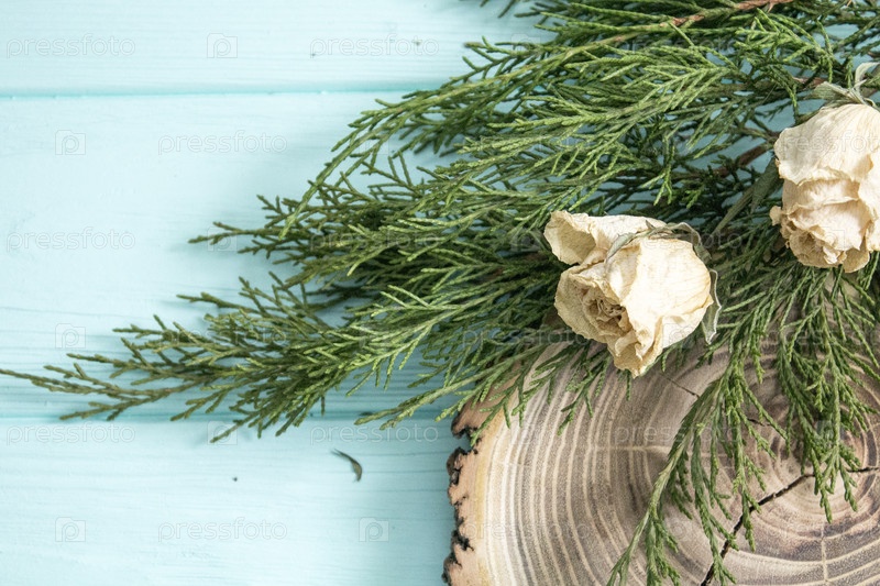 Сушеные розы, можжевельник и спил древесины