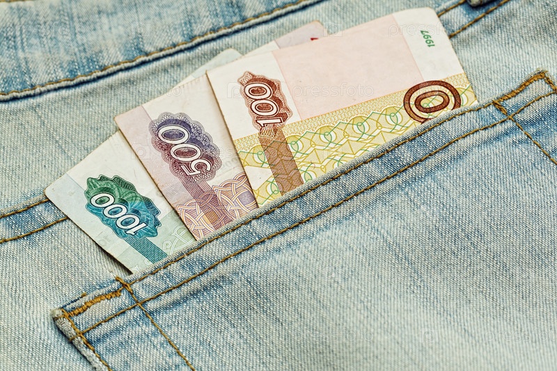 Российские деньги в кармане джинсов