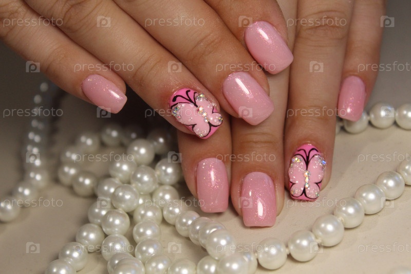 Маникюр с рисунком бабочки