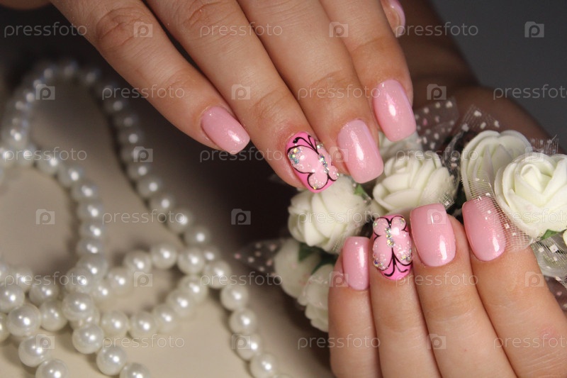 Маникюр с гель-лаком с рисунком бабочки