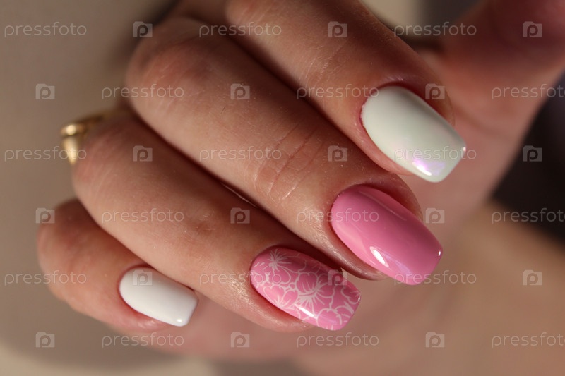 Маникюр с гель-лаком розового и белого цвета