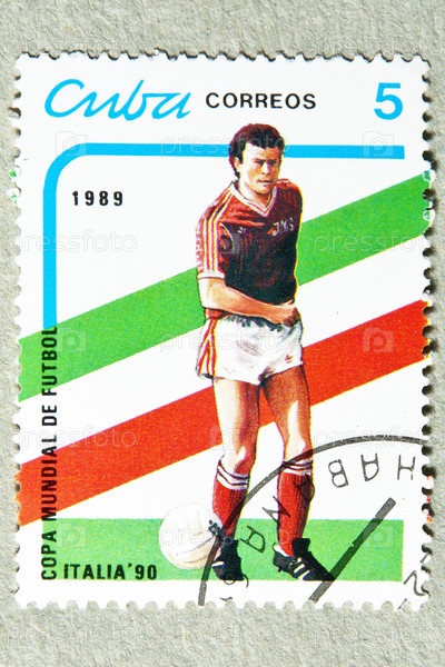 Почтовая марка Кубы 1989 года, чемпионата мира по футболу в Италии