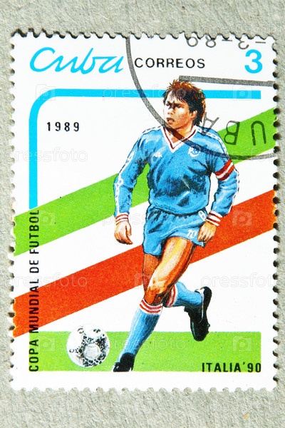 Почтовая марка Кубы 1989 года, чемпионата мира по футболу в Италии