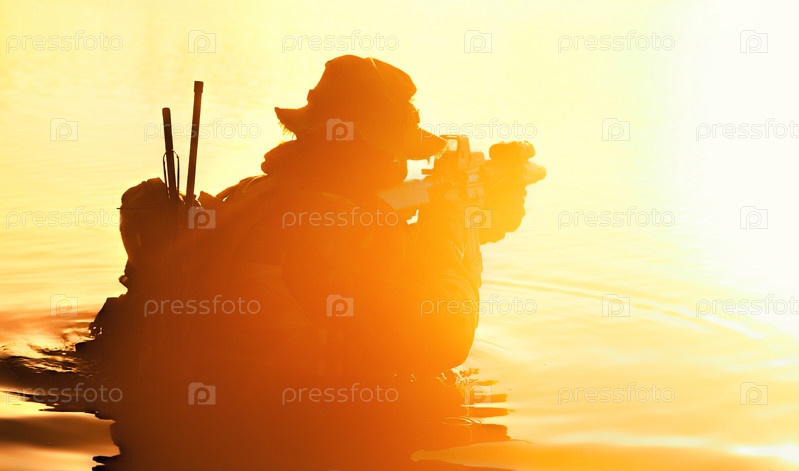 Пересечение реки солдатом в джунглях