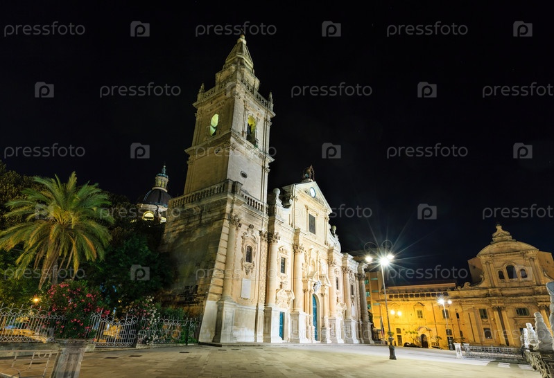 Ночной вид на город Рагуза, Сицилия, Италия