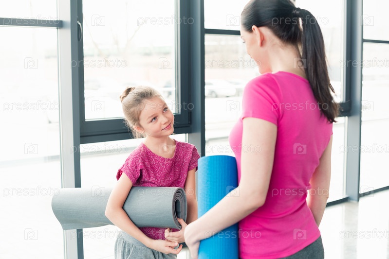 Мать и дочь в розовых в тренажерном зале