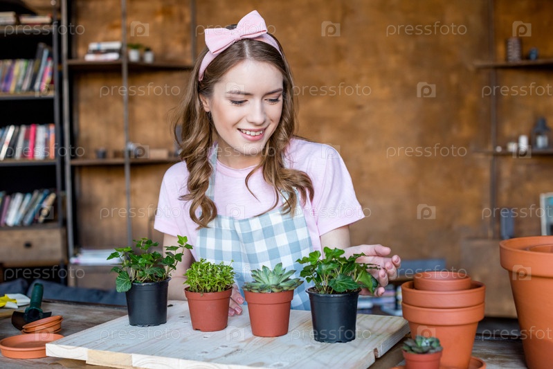 Женщина с растениями в горшках
