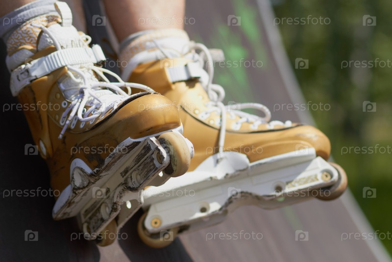 Ноги с роликовыми коньками свисают с пандуса