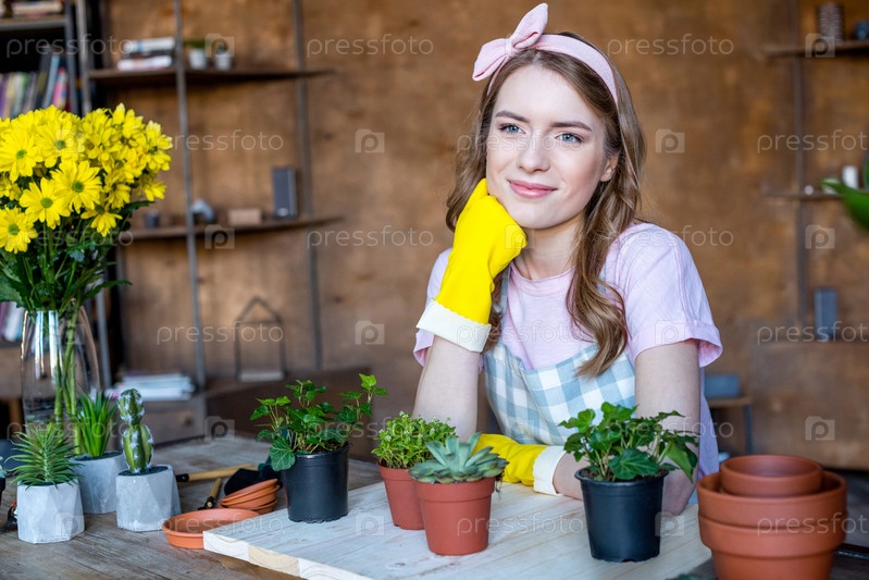 Женщина с растениями в горшках