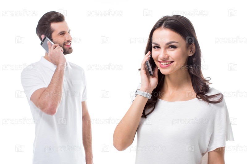 Пара со смартфонами