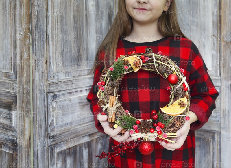 Рождественский венок в руках