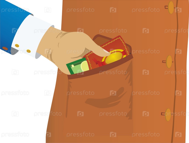 Нарисованная рука достает деньги из кармана