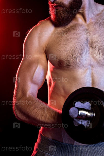Культурист с гантелями