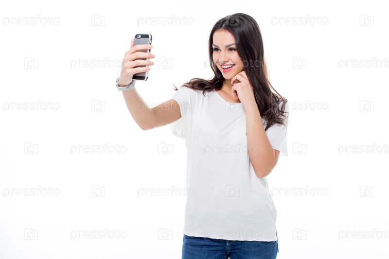 Женщина делает селфи