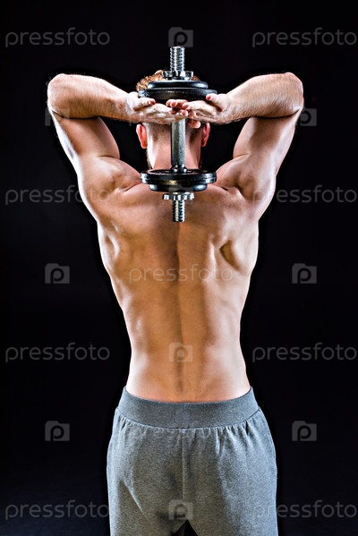 Культурист с гантелями