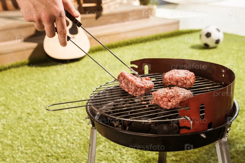 Жарить мясо для гамбургеров на открытом воздухе