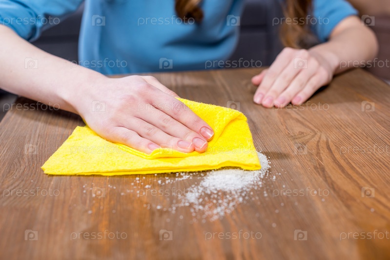 Женщина вытирает стол