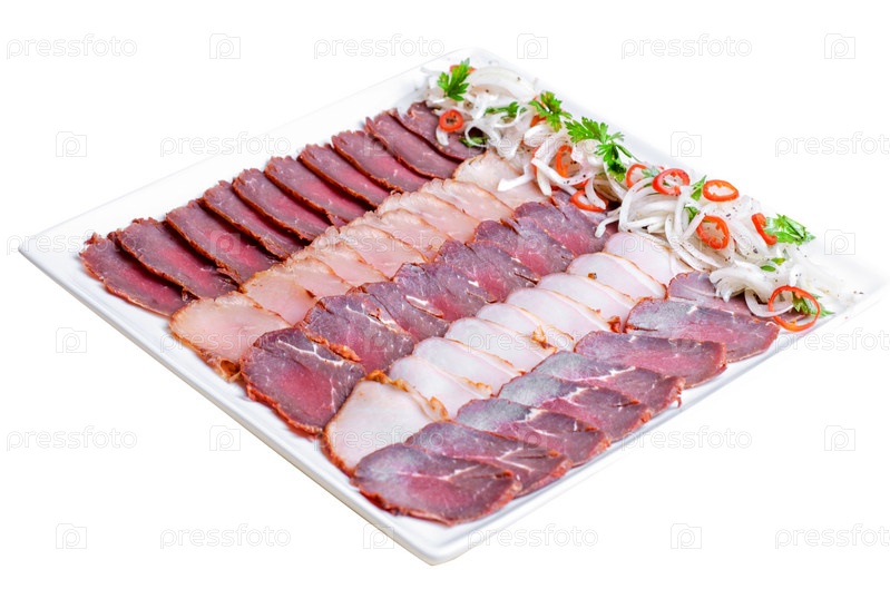 Блюдо с нарезанным мясом для банкетного меню