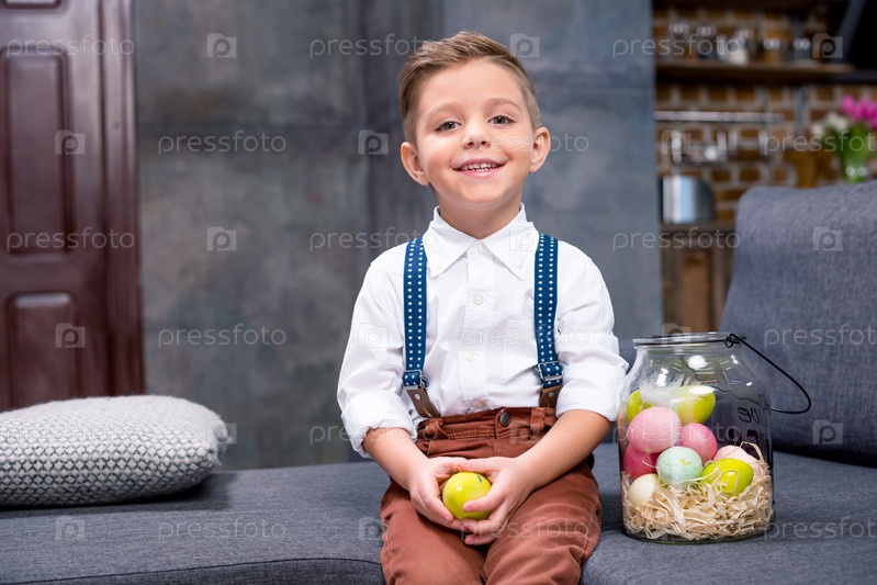 Маленький мальчик с пасхальными яйцами