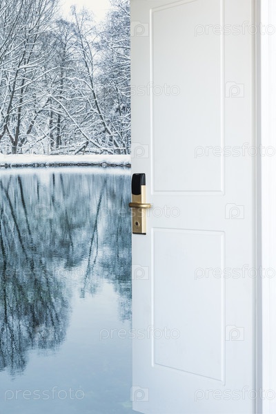 Открытая дверь и зимний лес