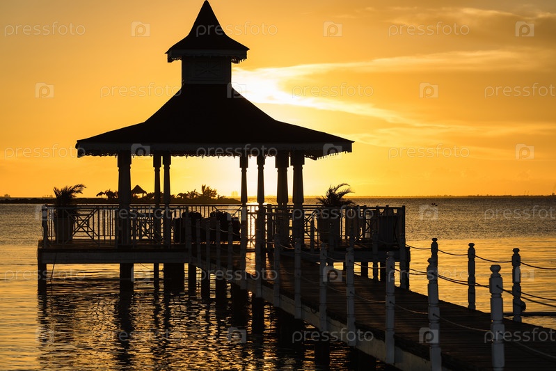 Беседка в море на закате