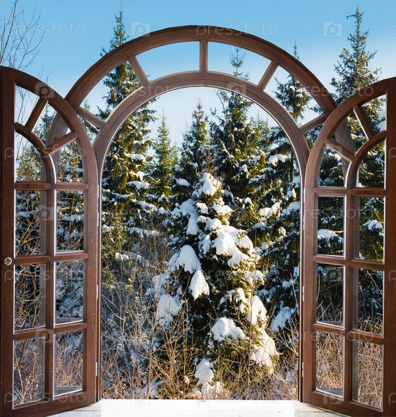 Арочная дверь с видом на зиму