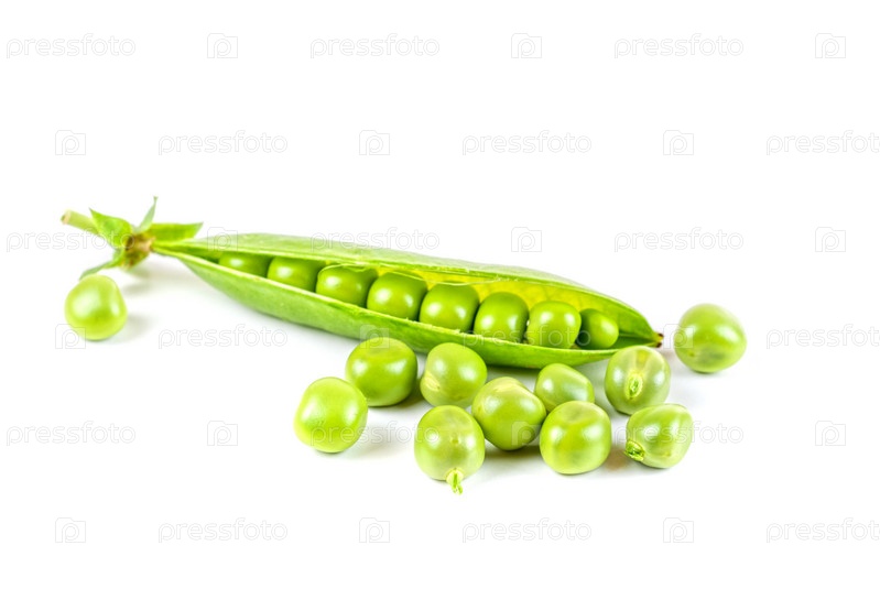 Спелый зеленый горох на белом фоне