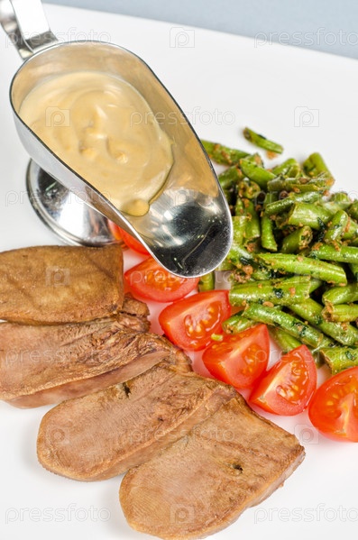 Говяжий язык с зеленой фасолью и помидорами черри